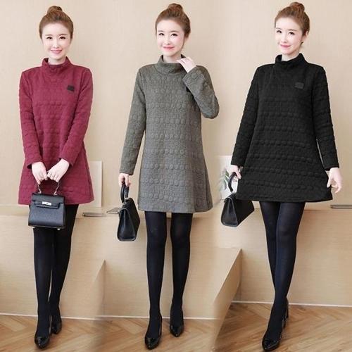 [엄지척]F90403 루즈핏 엠보 미니 폴라 하이넥 원피스 롱티_19872680_667501