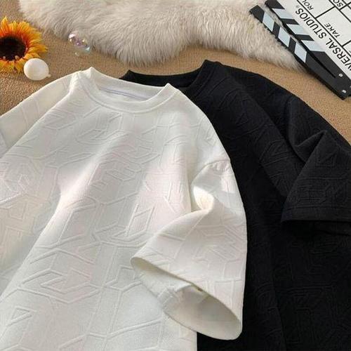 [셀러허브_여성트랜드패션]반소매티셔츠 반팔티셔츠 오버핏 엠보 오버핏티셔츠 남성 남자반팔티셔츠