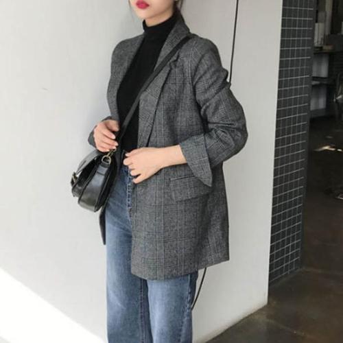 루즈핏 모직 체크 자켓 캐주얼정장 여성겨울의류