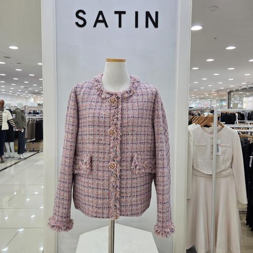 [샤틴]체크패턴 오버핏 트위드 자켓 S254M101_YS