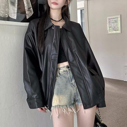 [에어플레인]오버핏 블루종 포켓 레더 자켓(2color)