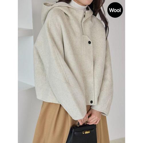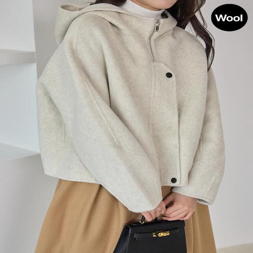 [바바라옷장]울100% 후드 핸드메이드 하프코트 울코트 브랜드공정 고퀄리티 핸드메이드코트 여성오버핏코트