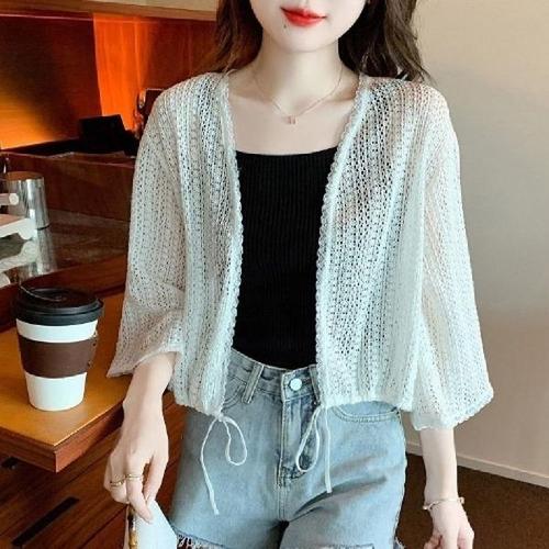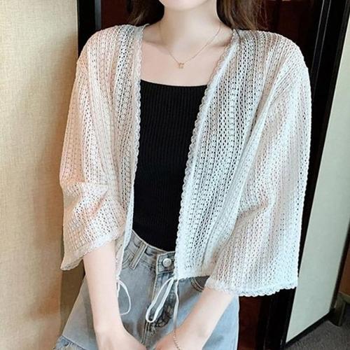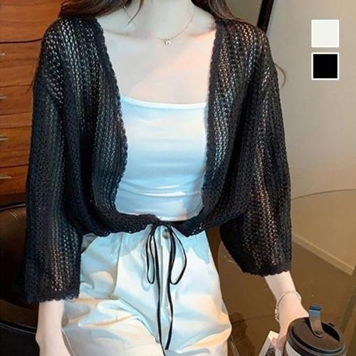 [엄지척]여성 휴양지 바닷가 루즈핏 그물 펀칭 7부 가디건_19799323_667501