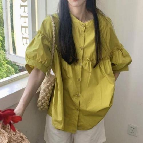 [엄지척]캐주얼 프릴 블라우스 여성 루즈핏 셔츠 7부_19650774_667501