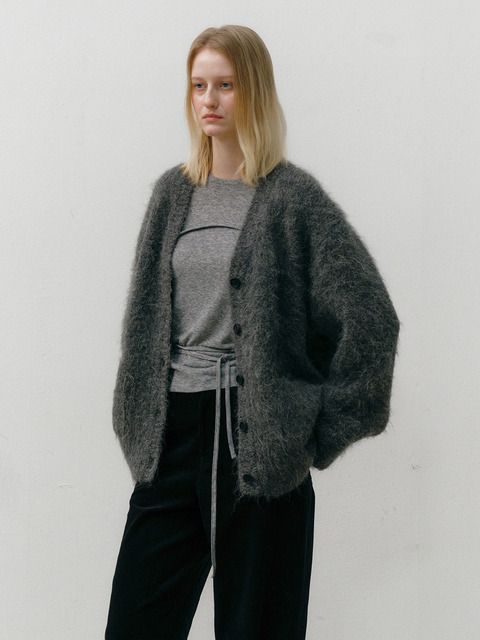 [오스트카카] 헤어리 알파카 가디건 차콜
