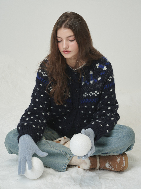 [오스트카카] 알파카 노르딕 자카드 가디건 네이비