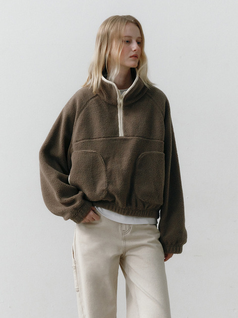 OSTKAKA 하프 집업 플리스 풀오버 모카