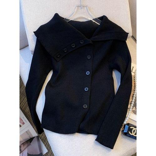 여성 오프숄더 카라 니트 브이넥 골지 봄 가을 겨울 데일리룩 검정 보라 아이