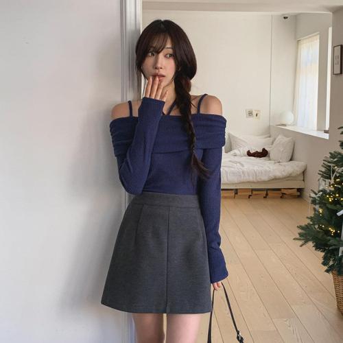 언밸런스 니트티 패션니트티 오픈숄더 여성니트