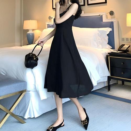[셀럽하우스]여리여리 EJDF3526 블랙 오프숄더 끈 롱원피스 JSC-24062301