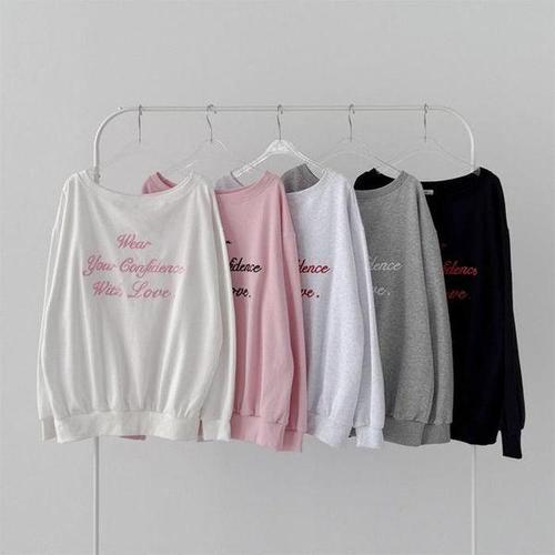 [셀러허브_여성트랜드패션]여자 자수 레터링 오프숄더 배색 봄 맨투맨