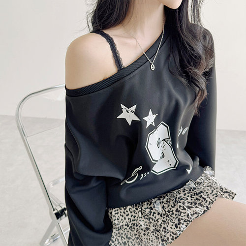 |KST99A4|여성 오버사이즈 긴팔 가을 오프숄더 프린트 루즈핏 맨투맨