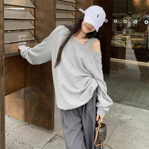 [옷자락] 여자 봄가을 여리핏 루즈 오프숄더 긴팔 맨투맨
