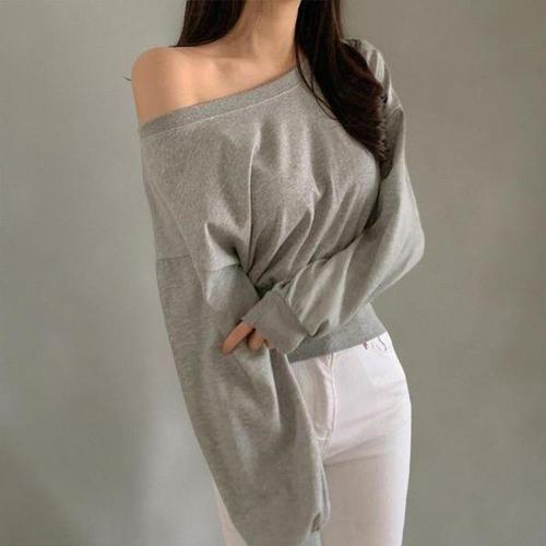 [신상오픈런]여성 오프숄더 맨투맨 오버사이즈 무채색 티셔츠