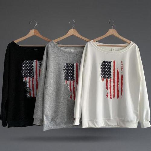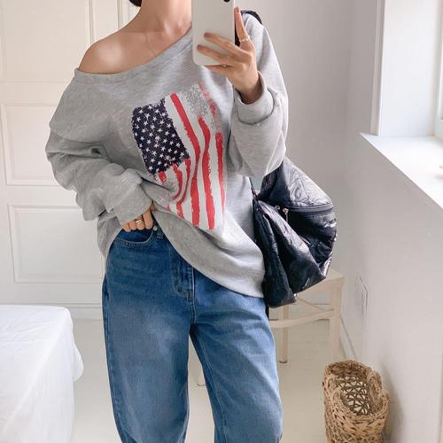 [신상오픈런]여성 오버사이즈 성조기 프린트 오프숄더 가을 맨투맨