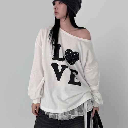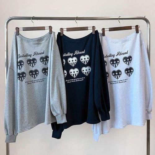 [셀러허브_여성트랜드패션]여자 오프숄더 하트긴팔티 루즈핏 봄 맨투맨