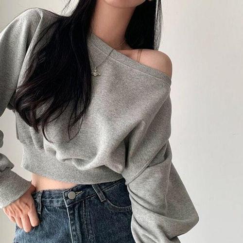 [에이치플러스몰]언발 오프숄더 크롭 맨투맨