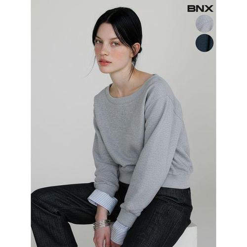 [BNX]여성 보트넥 소매 배색 맨투맨