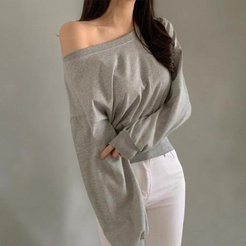 SAHINER 봄가을 여성 언발 오프숄더 맨투맨 루즈핏 데일리 긴팔티셔츠 LWAWY58