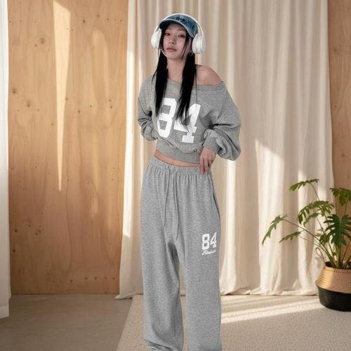 [셀러허브_여성트랜드패션]여성 오프숄더 크롭 맨투맨 세트 와이드 팬츠