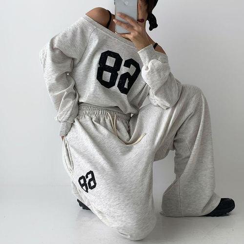 카밀라쇼룸 루즈 오프숄더 맨투맨 & 와이드 트레이닝 세트