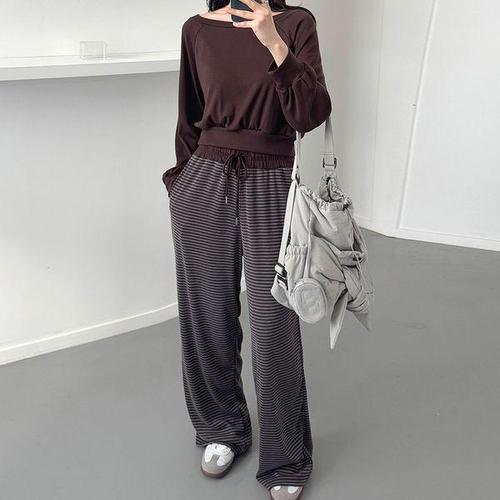 옷자락 / 여자 보트넥 나그랑 크롭 맨투맨 단가라 롱팬츠 세트