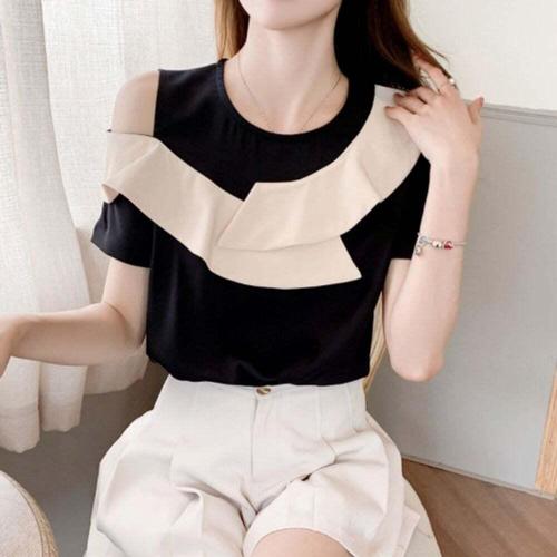 [셀럽하우스]사선 IHPK4773 프릴 언발란스 오프숄더 블라우스