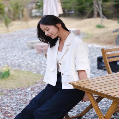 헤지스 여성 반소매크롭 자켓 오프화이트 (HSJA5BP21OW)