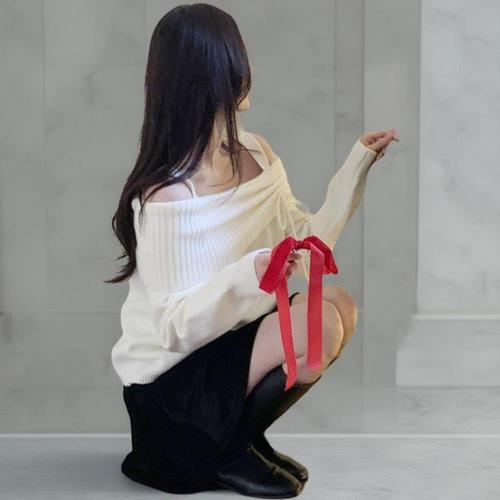 [옷자락] 여성 데이트룩 리본 오프숄더 루즈핏 니트웨어