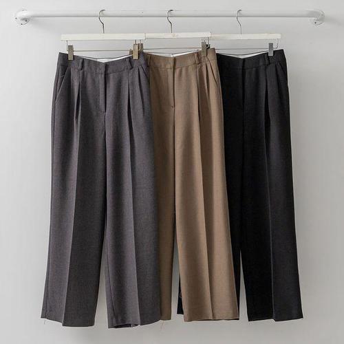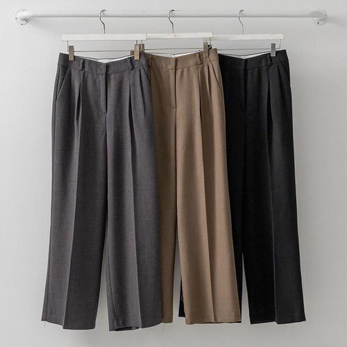[옷자락]여성 세미와이드 핀턱 울 슬랙스 가을 오피스룩