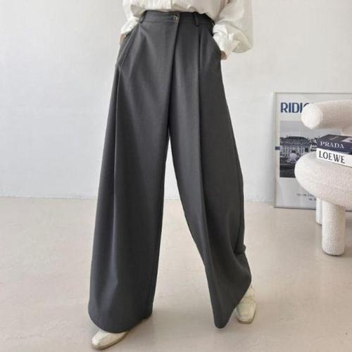 [옷자락]여성 오피스룩 사선 핀턱 스판 일자 와이드 슬랙스