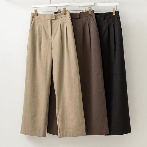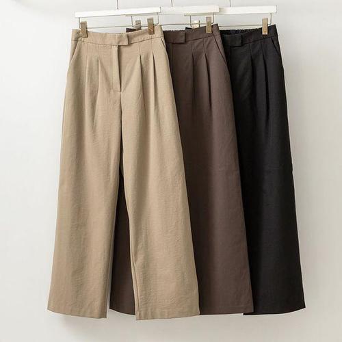 [옷자락] 여자 오피스룩 뒷밴딩 핀턱 와이드핏 롱 슬랙스