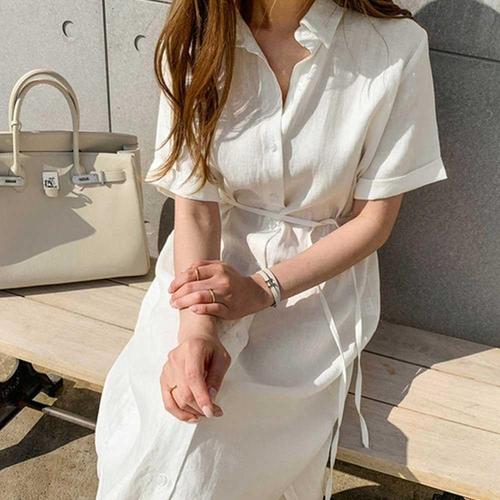 [셀럽하우스]여자 JXLY7594 오피스룩 허리끈 단추 원피스 여름 드레스