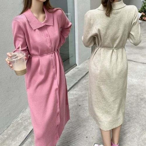 [셀럽하우스]루즈 CFIE9709 베이직 3컬러 니트 롱원피스 긴팔 오피스룩 여성