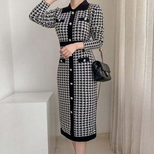 [셀럽하우스]루즈 QTUA0928 인기 3컬러 니트 롱원피스 긴팔 오피스룩 여성