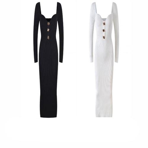 여자 2컬러 우아한 니트 롱원피스 스퀘어넥 오피스룩 WFKOD1F