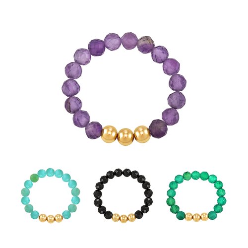 [니지쥬얼리] 14K GOLD 골드 트리플 볼 천연석 비즈 반지