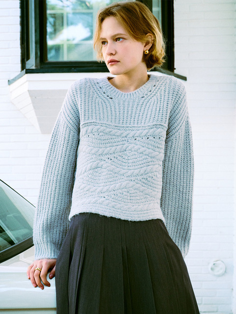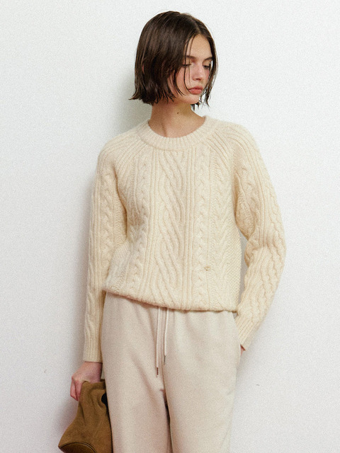 [온앤온]클로버 패턴 라운드 니트(JK2WPB43)