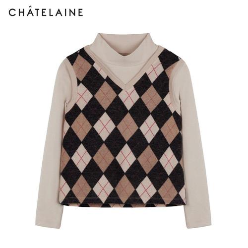 [올리비아하슬러]직영_아가일 베스트 목폴라 티셔츠_HCBWTS202