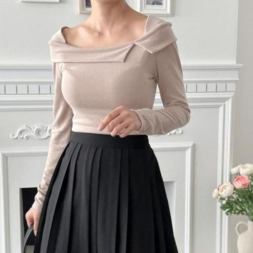 [에이치플러스몰]오프숄더 봄가을티 스판티셔츠 여성티셔츠 앨리스