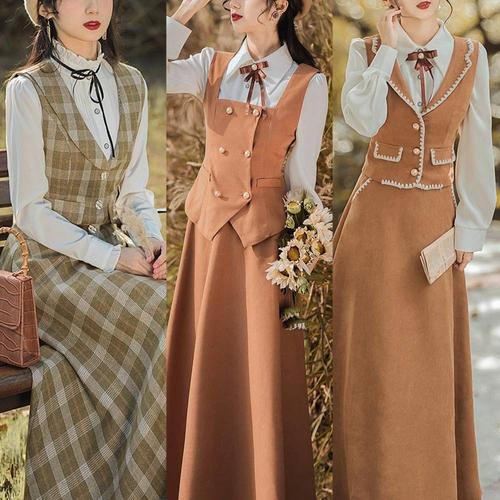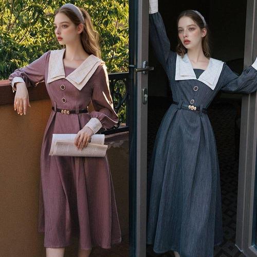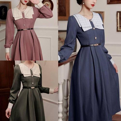 프렌치 경성드레스 긴팔 복고의상대여 투피스 복 WFLQB1U