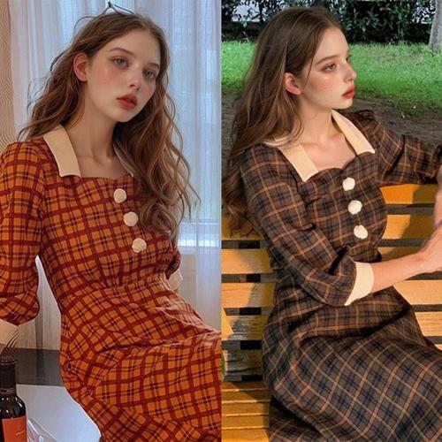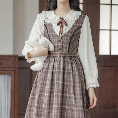 브라운체크 경성의상대여 개화기드레스 레트로 개 WFLQB1T