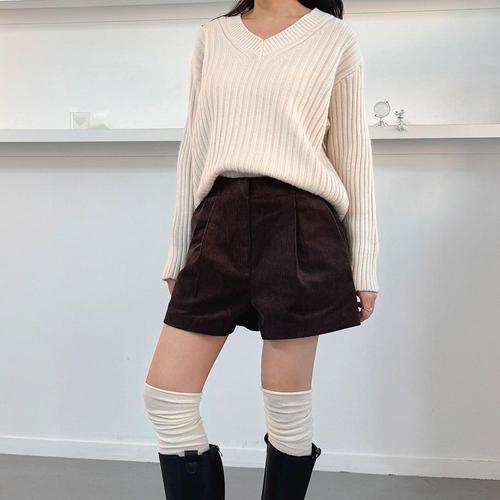 옷자락 / 여자 핀턱 코듀로이 겨울숏팬츠 코튼 와이드 반바지