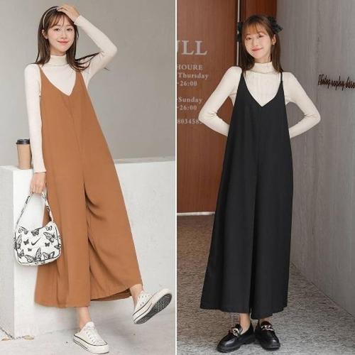 [셀러허브_여성트랜드패션]여자 점프수트 코디 와이드핏 레이어드 민소매 여름 롱 점프슈트
