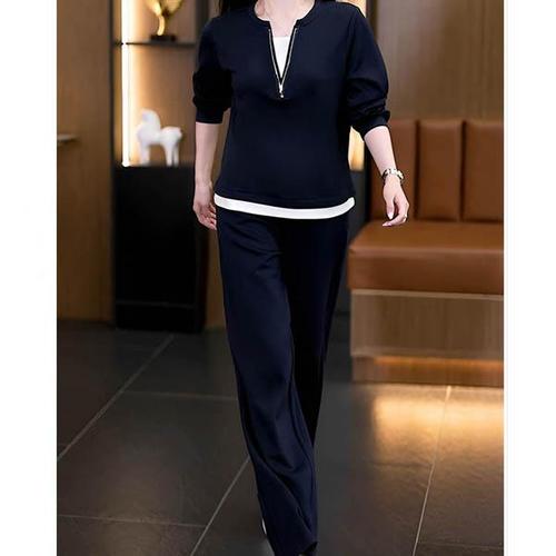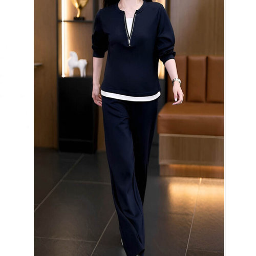 템퍼먼트 여성 팬츠 수트 루즈핏 단색 가을 겨울 출퇴근용 긴팔 라펠 탑 와이드 팬츠 투피스 세트