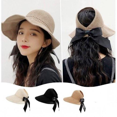 리본 와이어 선캡 여성 챙넓은 여름 모자 WFMB7Z4