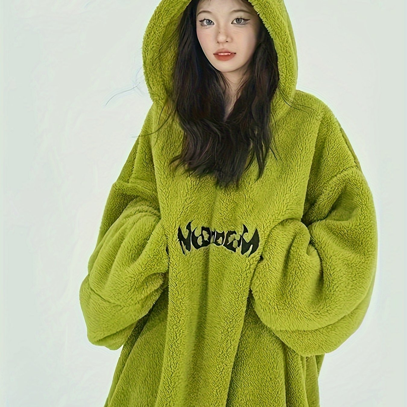 TEMU 단색 집업 테디 후디, 캐주얼 긴팔 후디 재킷, 여성 의류