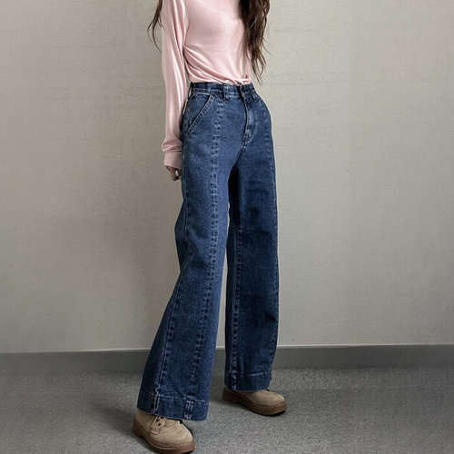 [신상오픈런]여자 데일리룩 사선 절개 포인트 와일드 데님 팬츠