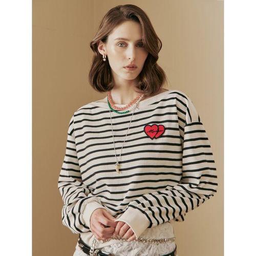 [마쟈]하트 와펜 보트넥 스트라이프 맨투맨 티셔츠