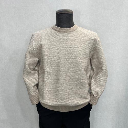 [바쏘옴므]니트 울 블랜드 와플패턴 라운드니트 베이지 Z4WR28-2